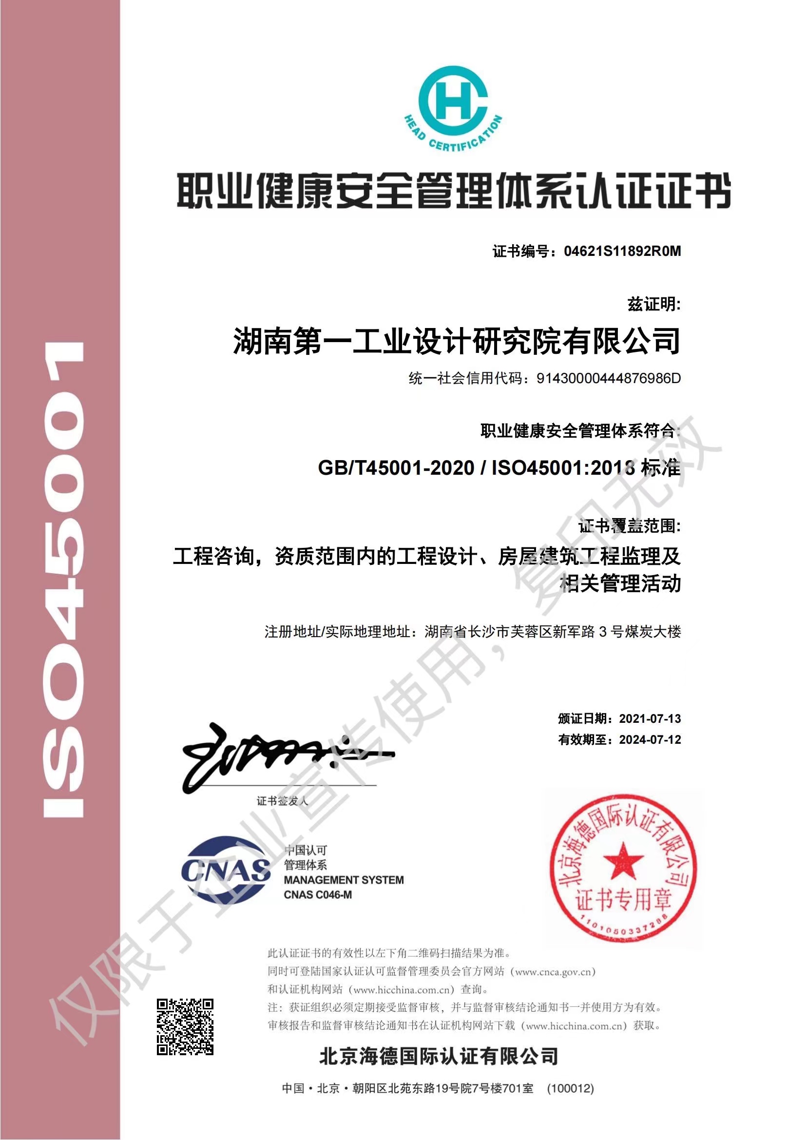 ISO45001職業(yè)健康管理體系認(rèn)證證書…